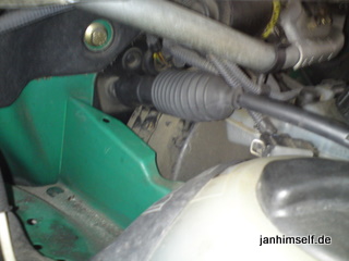 Auf der Motorseite kommt der Gaszug dann neben dem Kühlwasserbehälter