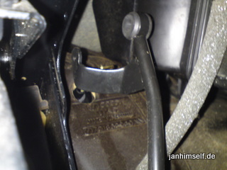 Oben am Gaspedal ist der Gaszug einfach eingesteckt und kann zur Seite hin herausgedrückt werden: