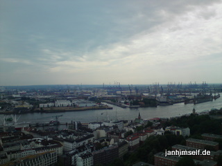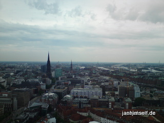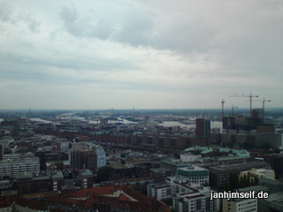 Heiß war es, auch wenn diese Bilder vom Michel aus aufgenommen, den Eindruck von Schiet-Wetter aufkommen lassen. Temperaturen jenseits der 32°C Marke: