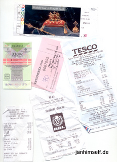 Eintrittskarten, Fahrkarten und der Beleg, die letzten Kronen für Bier ausgegeben zu haben: