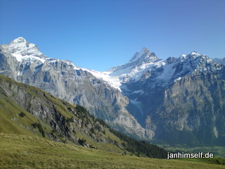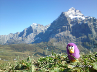 Wanderung auf 2100 Metern Höhe: hoch ging's mit der Seilbahn von Grindelwald aus. Und dann in 4,5 Stunden wieder herunter - tolle Ausblicke, die Gefahr Kühen zu begegnen, Modelleisenbahn-Feeling