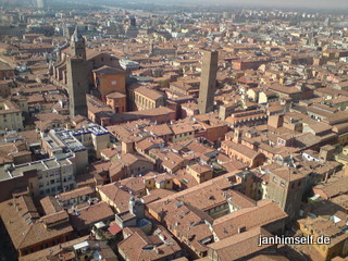 Auf den höheren der beiden Geschlechtertürme, den Torre Asinelli kann man