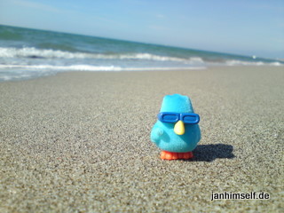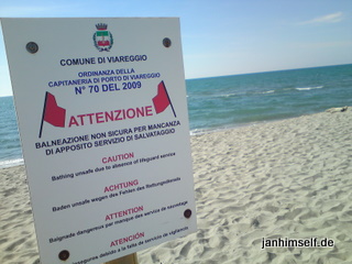 Dann ging's weiter: da lag ein Strand am Wegesrand! Aber: "Baden unsafe wegen des Fehlens des Rettungsdienstes!"