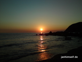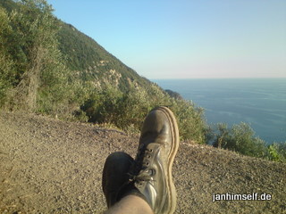 Hauptsächlich, um noch einmal eine lange Wanderung zu machen: diesmal 5 Stunden, die in Levanto am Meer endeten: also direkt am Strand ankommen und ins Wasser springen, im Sonnenuntergang trocknen lassen und noch eine Zigarette am Meer - so muss das sein: