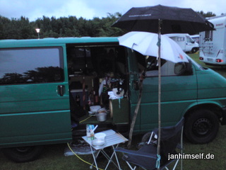 Am zweiten Tag erst "Wattwanderung", dann Regen und Grillen am Friesengrünen Bulli: